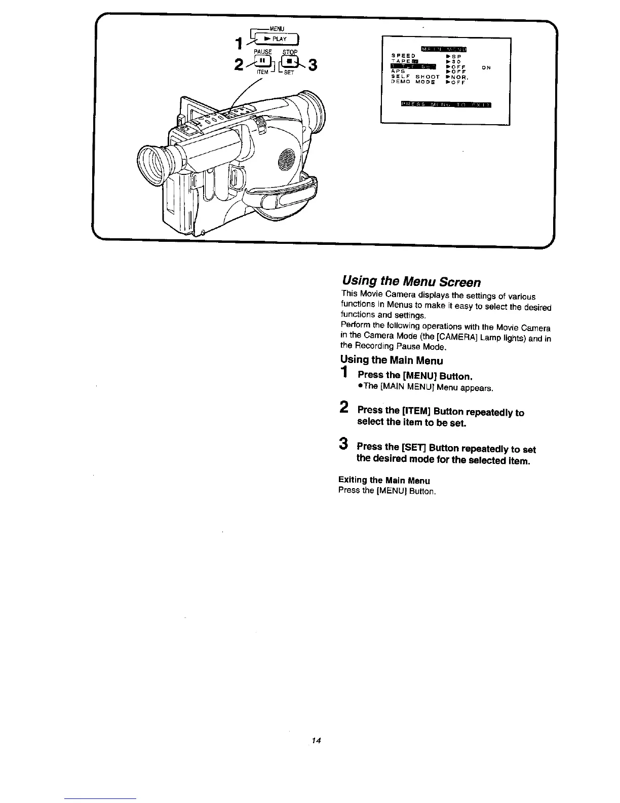 Panasonic NV VX 27 - Using the Menu Screen