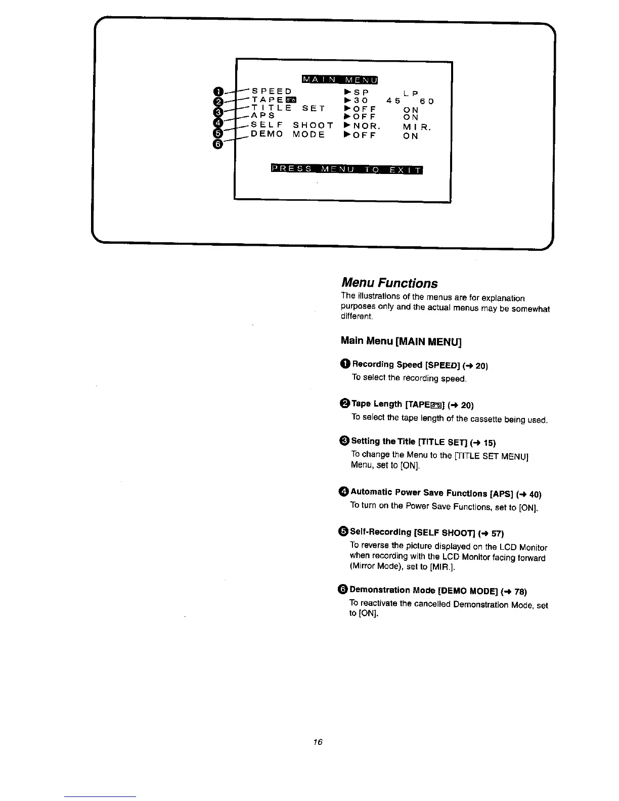 Panasonic NV VX 27 - Menu Functions; Main Menu