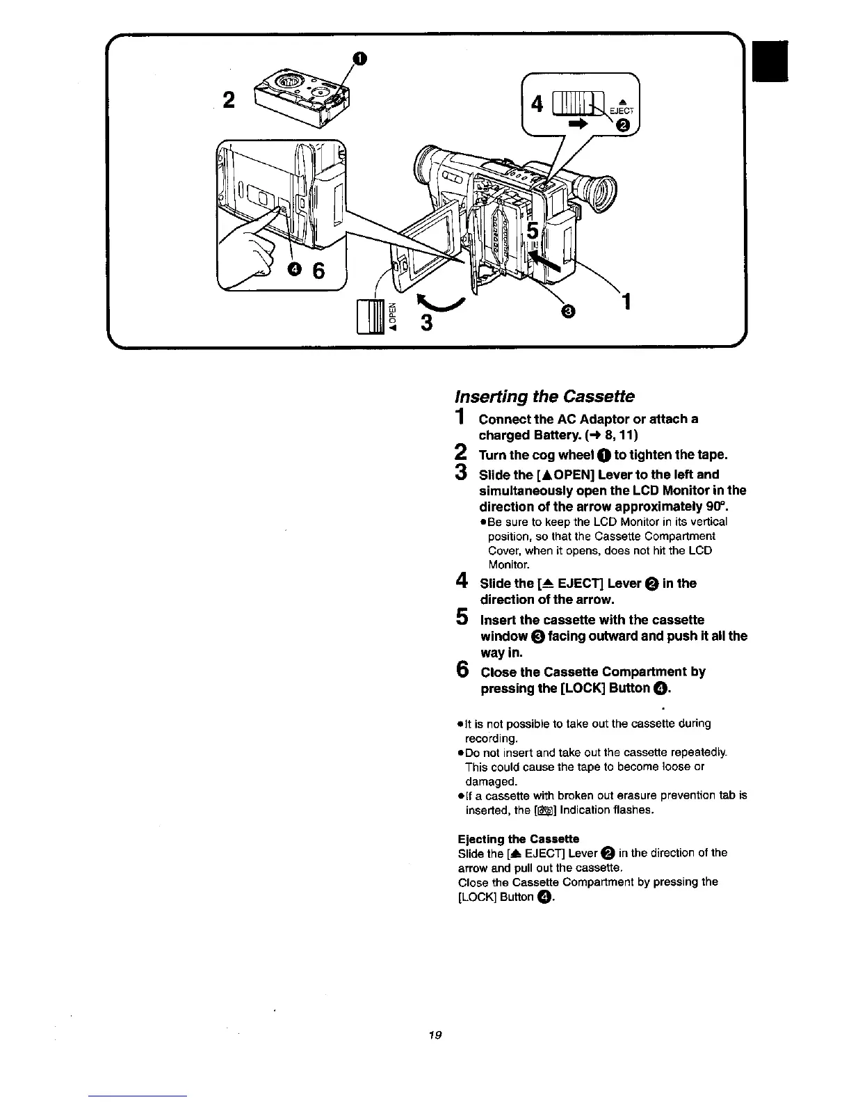 Panasonic NV VX 27 - Inserting the Cassette; Ejecting the Cassette
