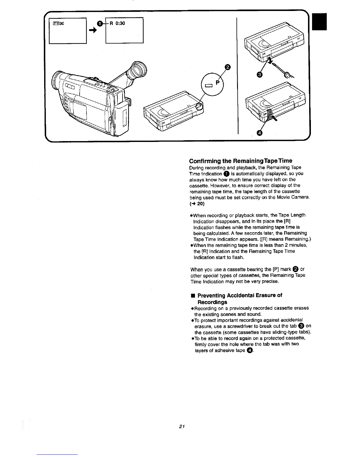 Panasonic NV VX 27 - Confirming the Remaining Tape Time; Preventing Accidental Erasure of Recordings