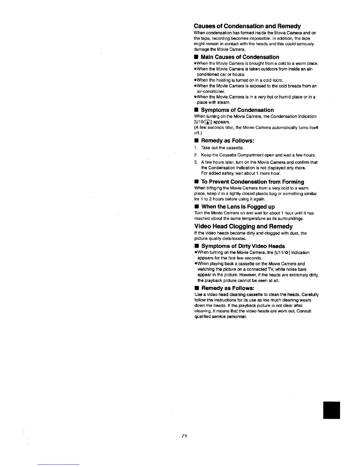 Panasonic NV VX 27 - Troubleshooting and Technical Information; Condensation and Video Head Issues