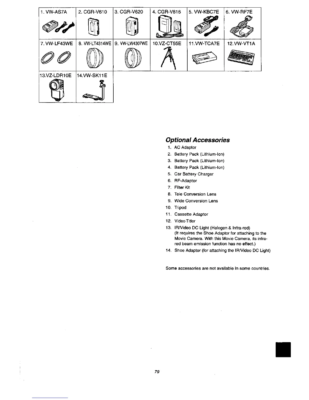 Panasonic NV VX 27 - Specifications and Accessories; Optional Accessories