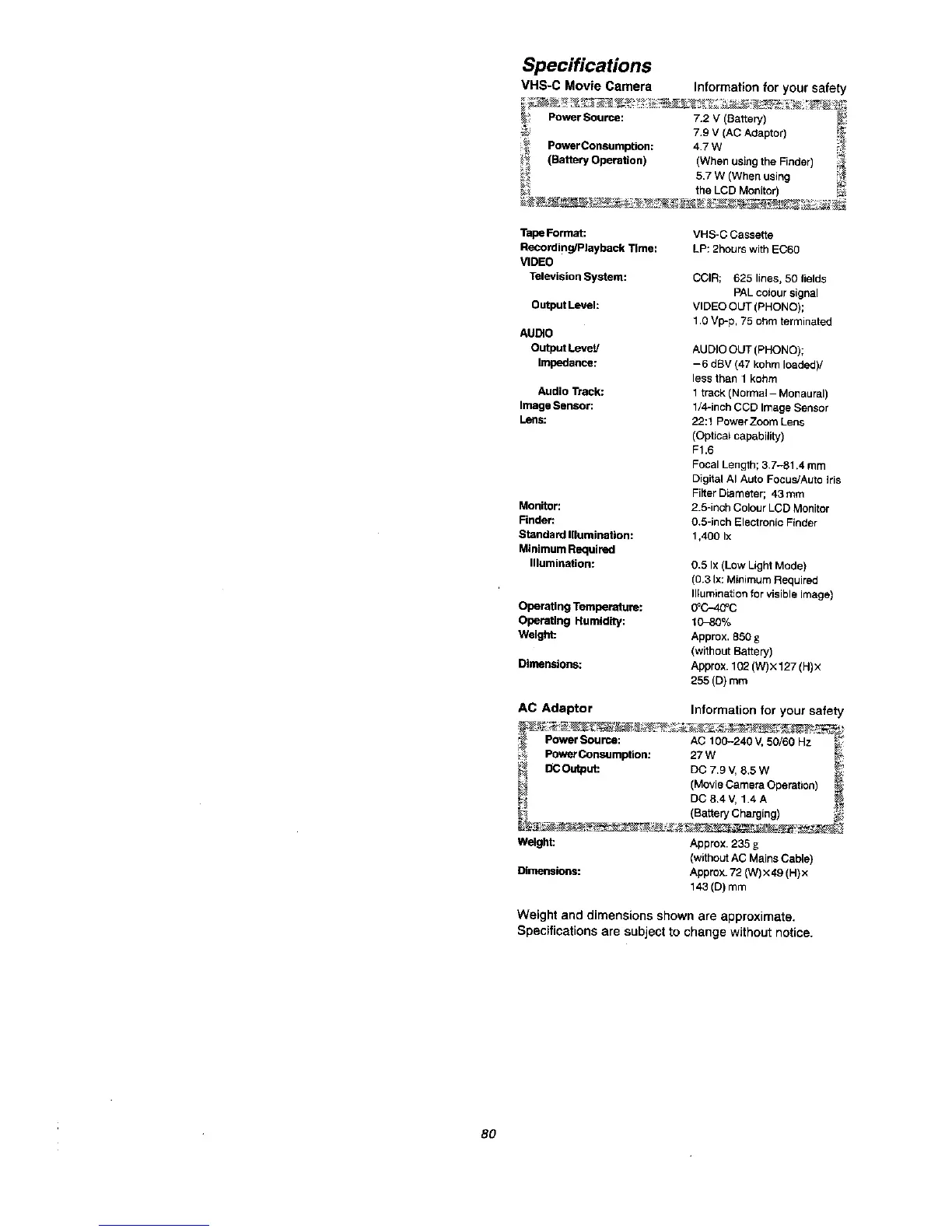 Panasonic NV VX 27 - Technical Specifications