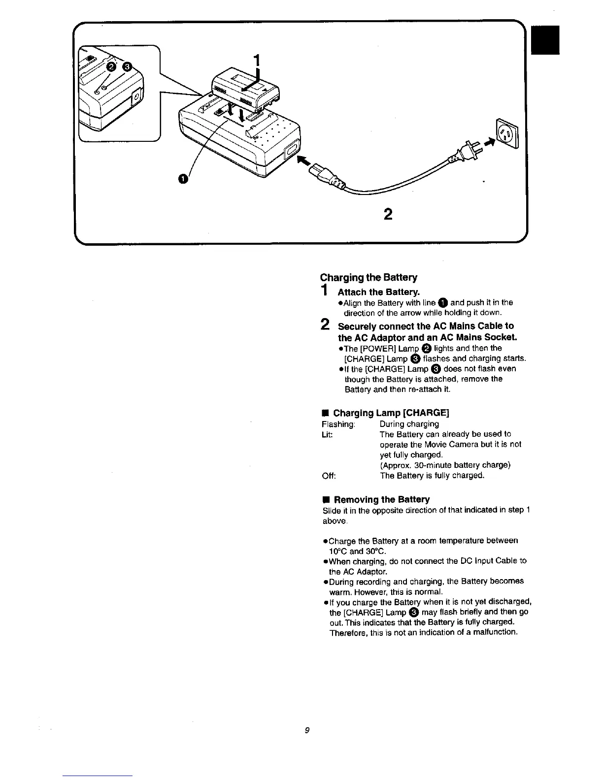 Panasonic NV VX 27 - Charging the Battery; Charging Lamp; Removing the Battery