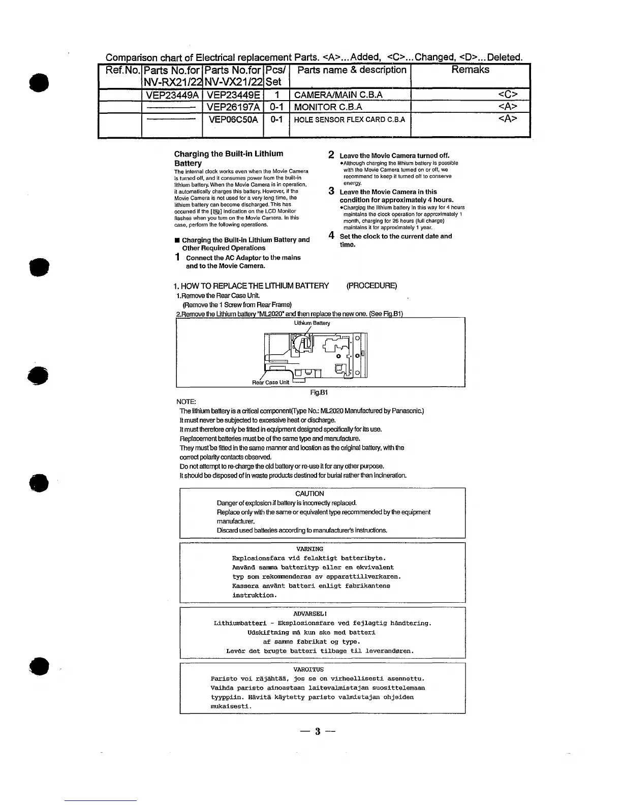 Panasonic NV-VX22 - Lithium Battery Replacement Procedure