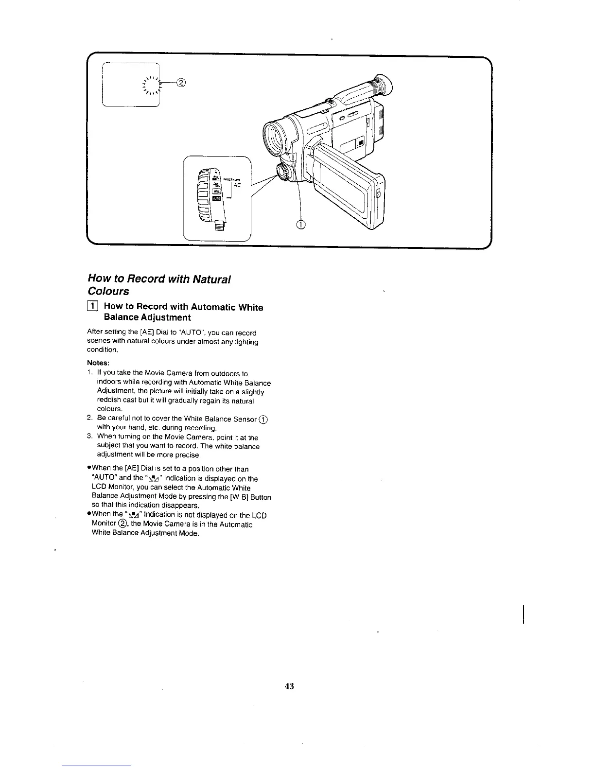 Panasonic NV-VX3 - Recording with Natural Colours; Automatic White Balance Adjustment