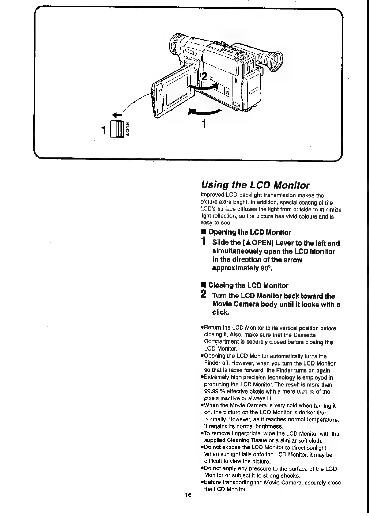 Panasonic NV-VX55A - Using the LCD Monitor; Opening the LCD Monitor; Closing the LCD Monitor