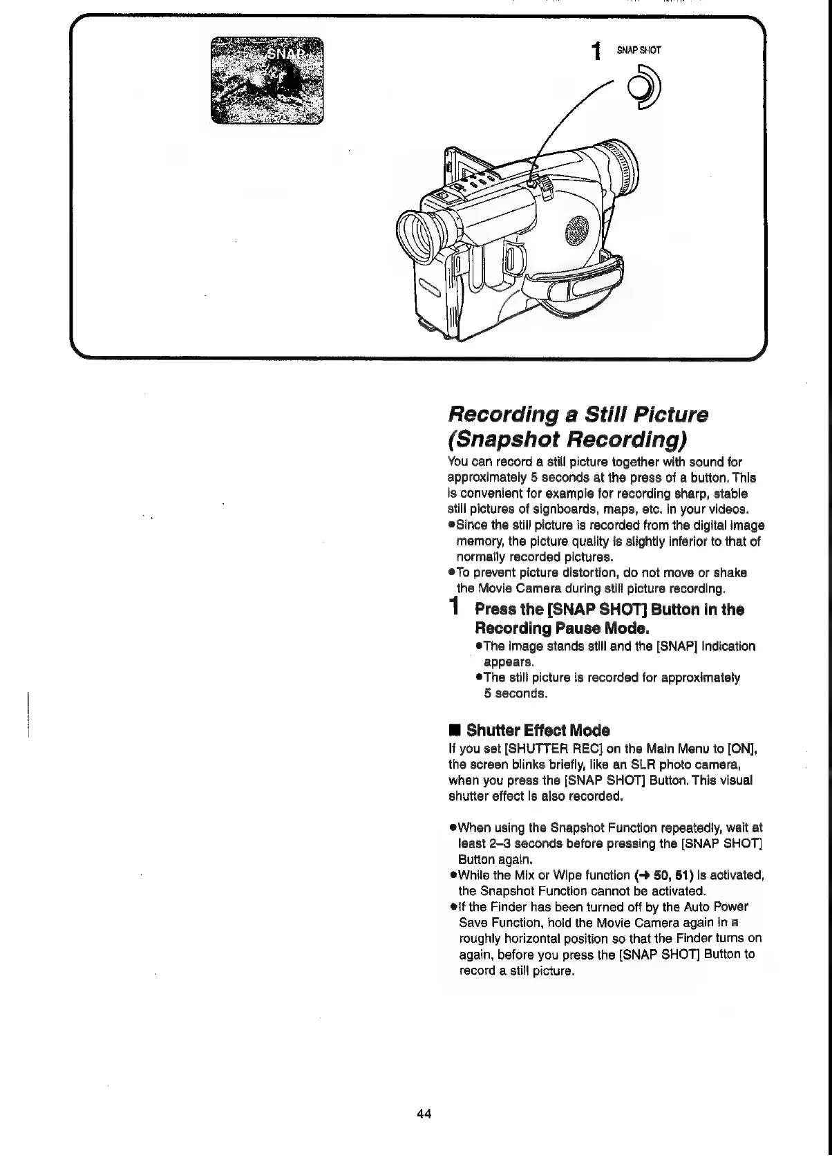 Panasonic NV-VX55A - Recording a Still Picture (Snapshot Recording)
