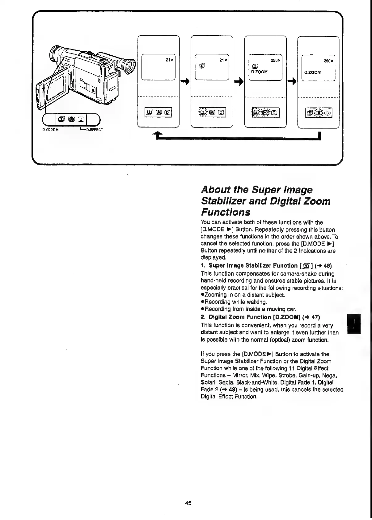 Panasonic NV-VX55A - About the Super Image Stabilizer and Digital Zoom Functions