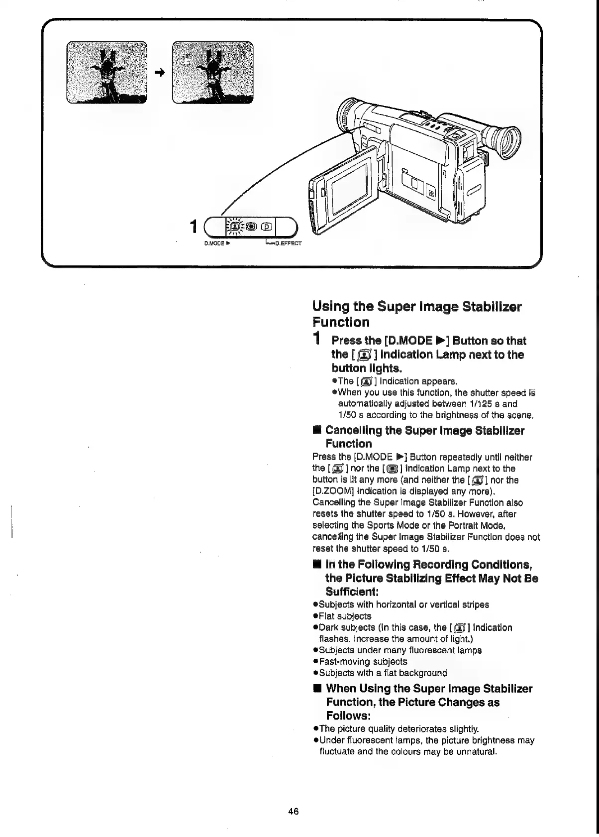Panasonic NV-VX55A - Using the Super Image Stabilizer Function