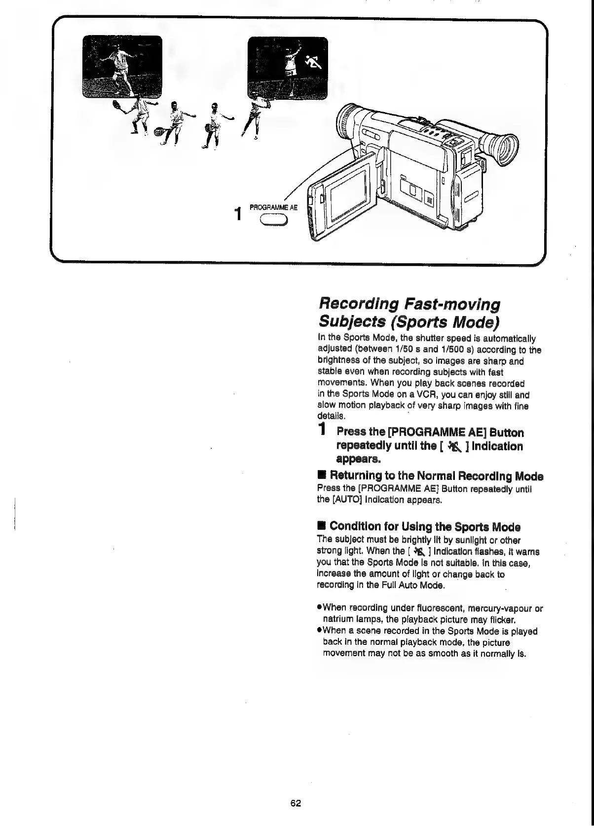 Panasonic NV-VX55A - Recording Fast-moving Subjects (Sports Mode)