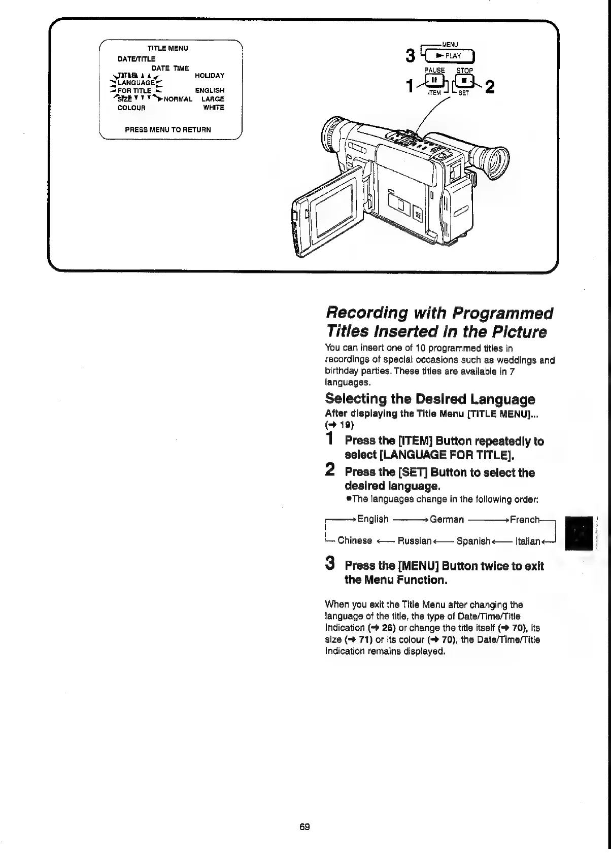 Panasonic NV-VX55A - Recording with Programmed Titles Inserted in the Picture; Selecting the Desired Language