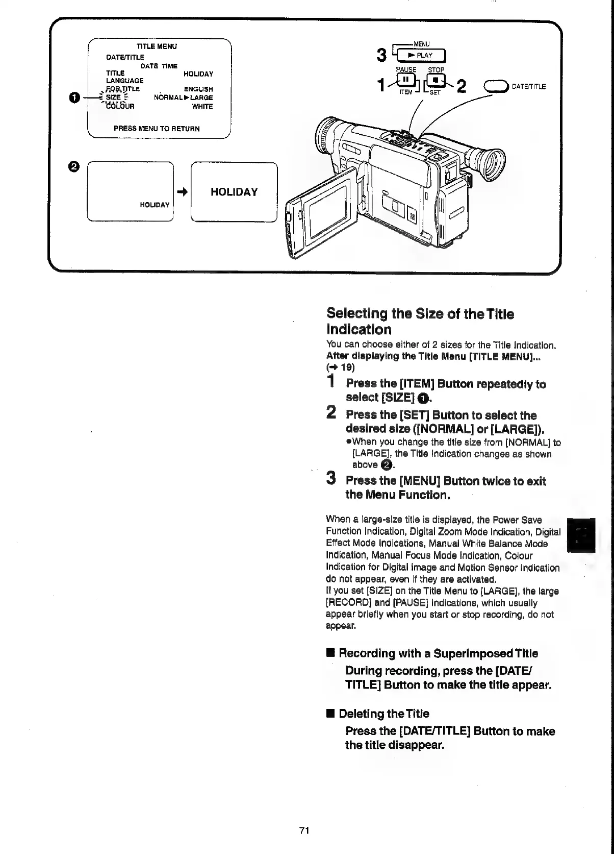 Panasonic NV-VX55A - Selecting the Size of the Title Indication