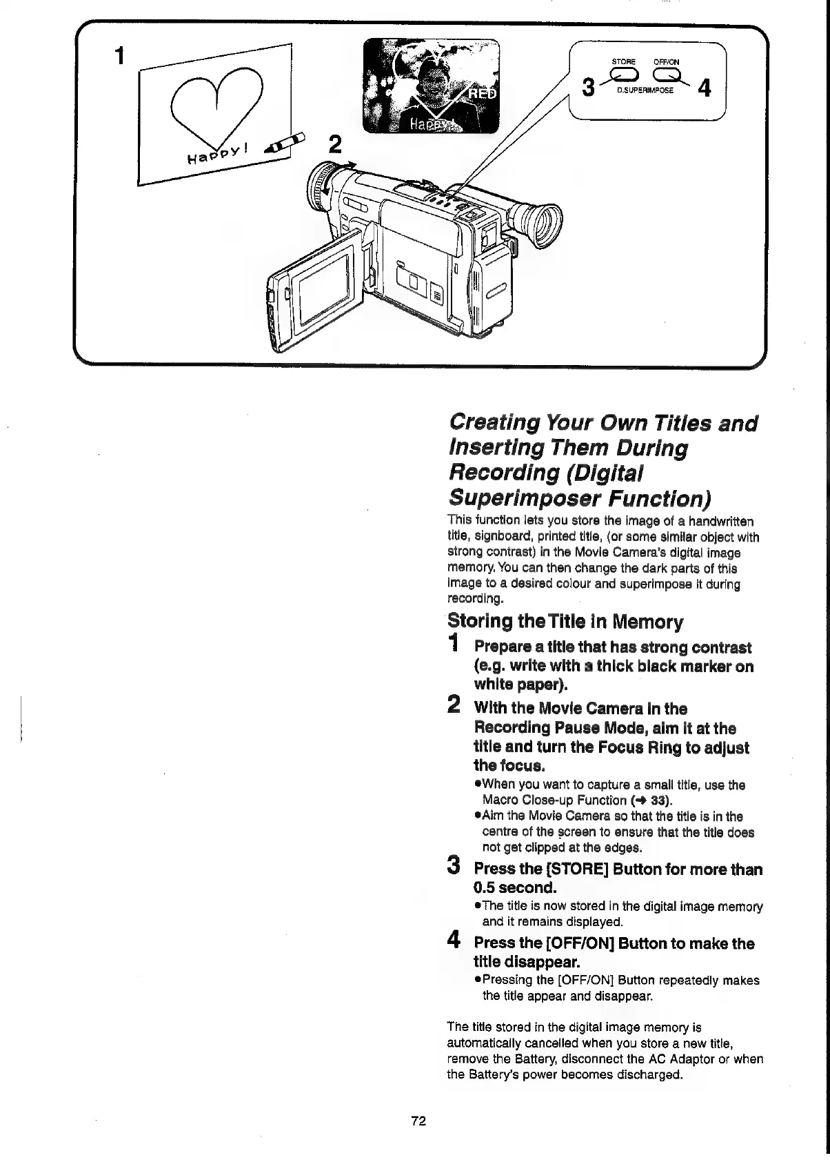Panasonic NV-VX55A - Creating Your Own Titles and Inserting Them During Recording (Digital Superimposer Function); Storing the Title in Memory