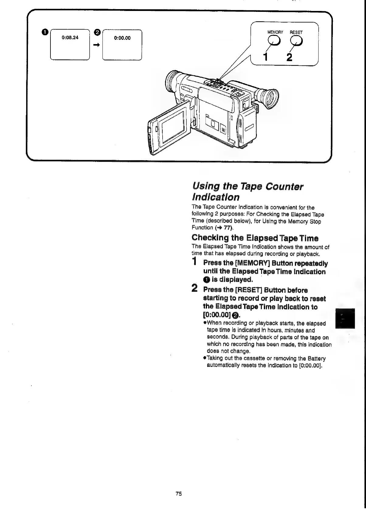 Panasonic NV-VX55A - Using the Tape Counter Indication; Checking the Elapsed Tape Time