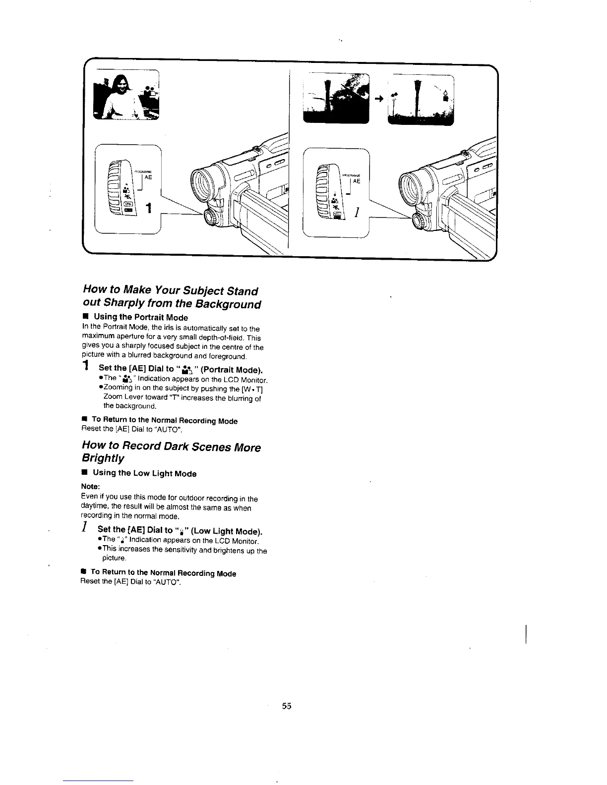 Panasonic NV-VX7 - How to Make Your Subject Stand out Sharply from the Background; How to Record Dark Scenes More Brightly