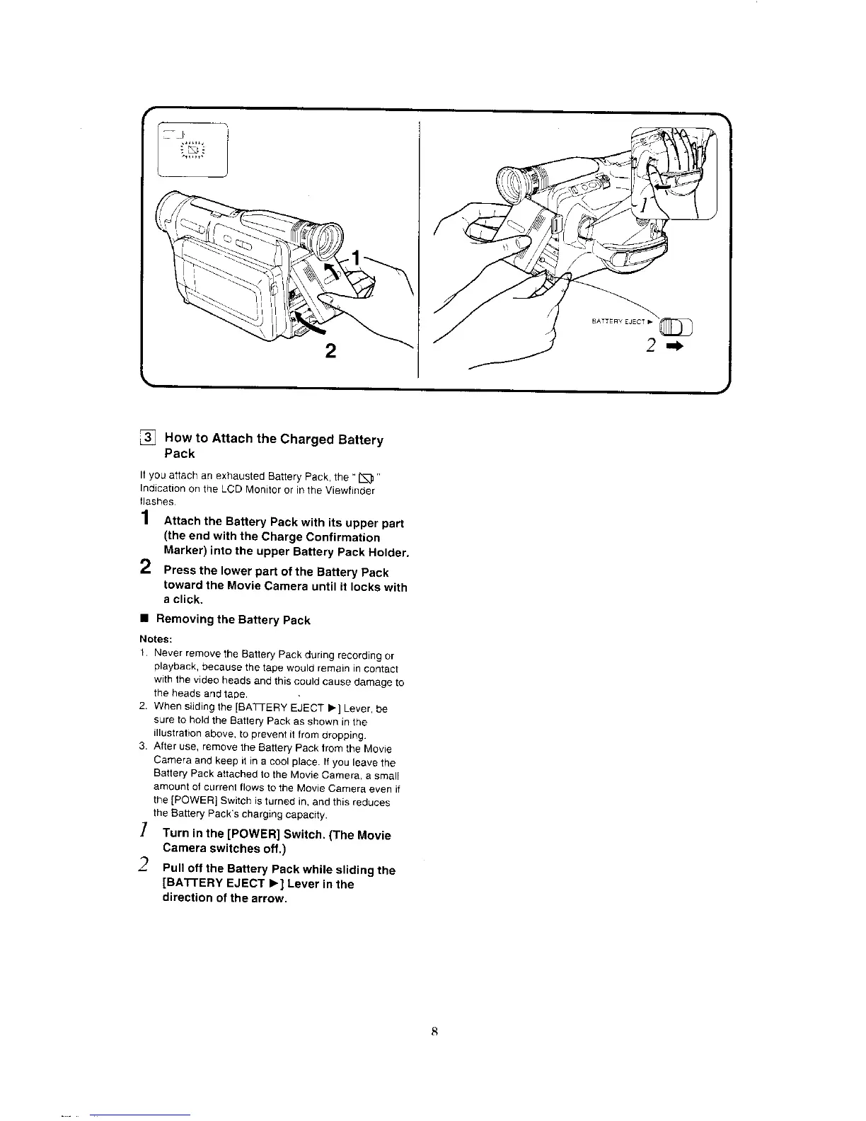 Panasonic NV-VX7 - How to Attach the Charged Battery Pack