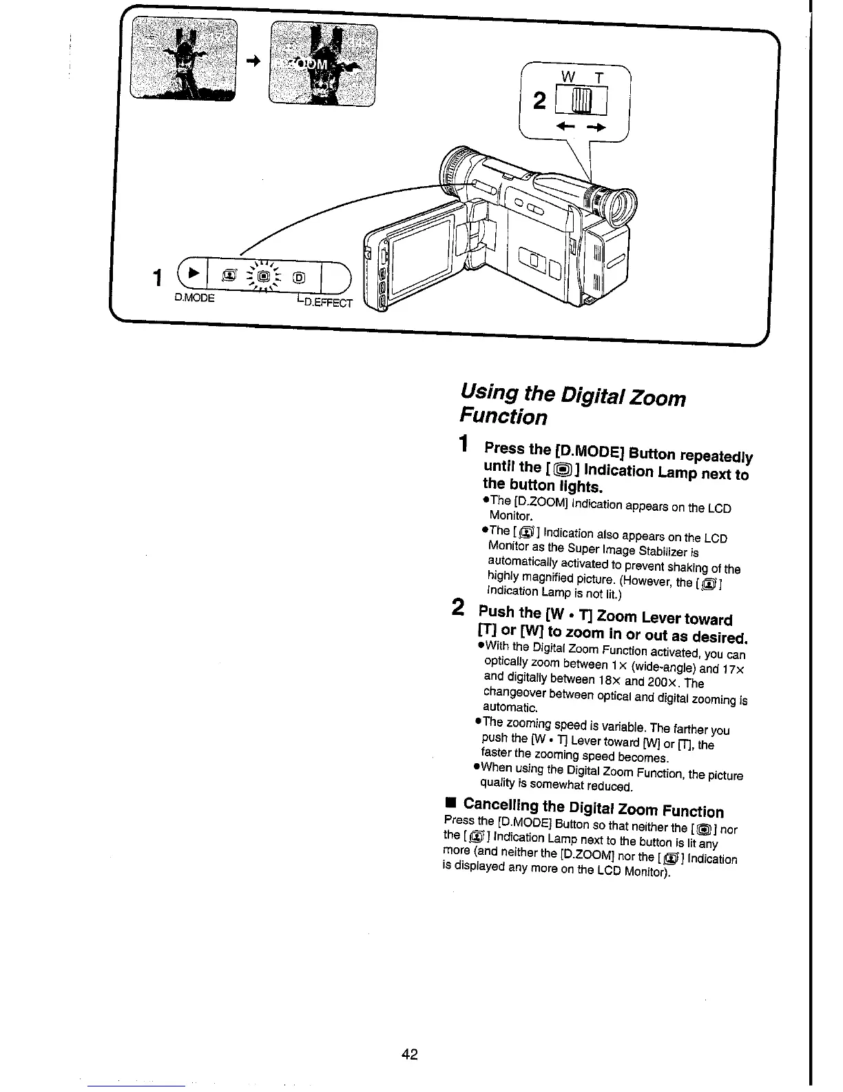 Panasonic NV-VX70A - Using the Digital Zoom Function; Cancelling the Digital Zoom Function