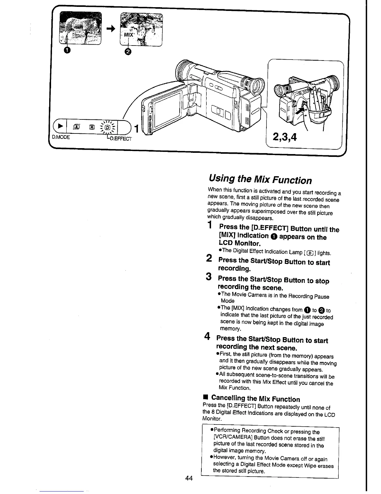 Panasonic NV-VX70A - Using the MIX Function; Cancelling the MIX Function