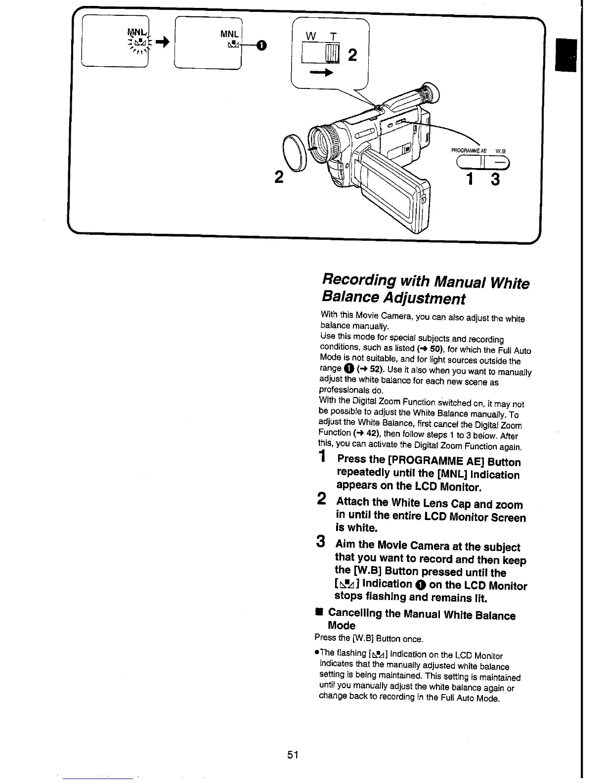 Panasonic NV-VX70A - Recording with Manual White Balance Adjustment; Cancelling the Manual White Balance Mode