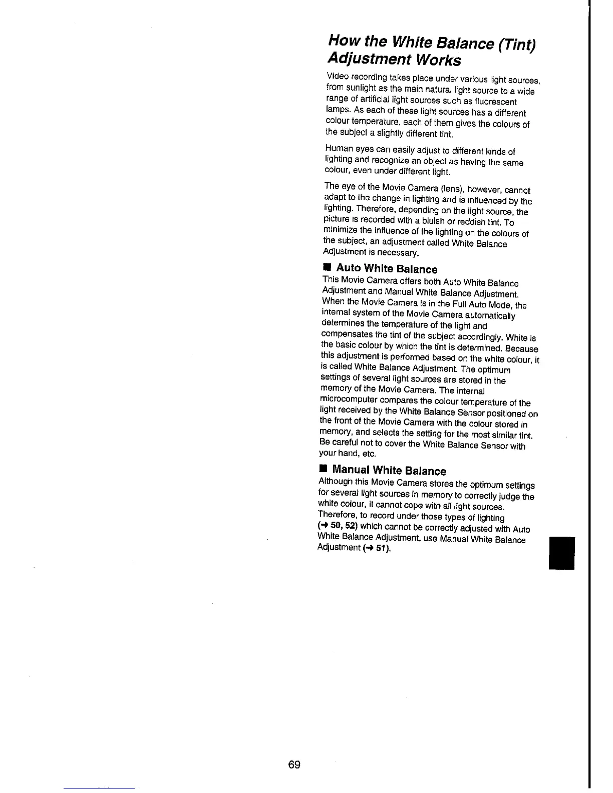 Panasonic NV-VX70A - How the White Balance Adjustment Works; Auto White Balance; Manual White Balance