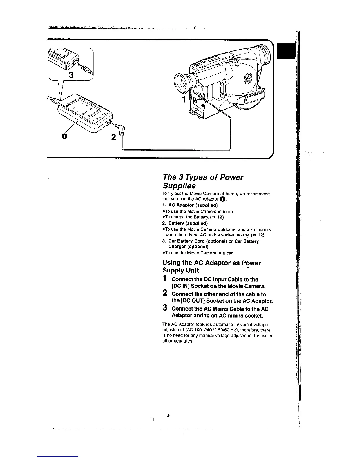Panasonic NV-VX77A - The 3 Types of Power Supplies; Using the AC Adaptor as Power Supply Unit