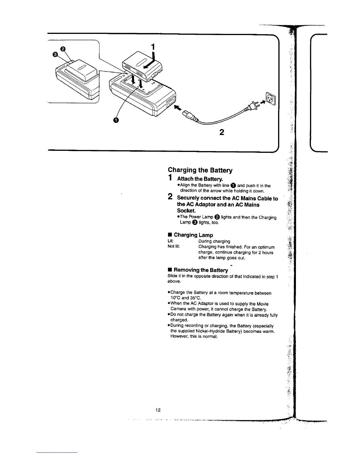 Panasonic NV-VX77A - Charging the Battery; Charging Lamp; Removing the Battery