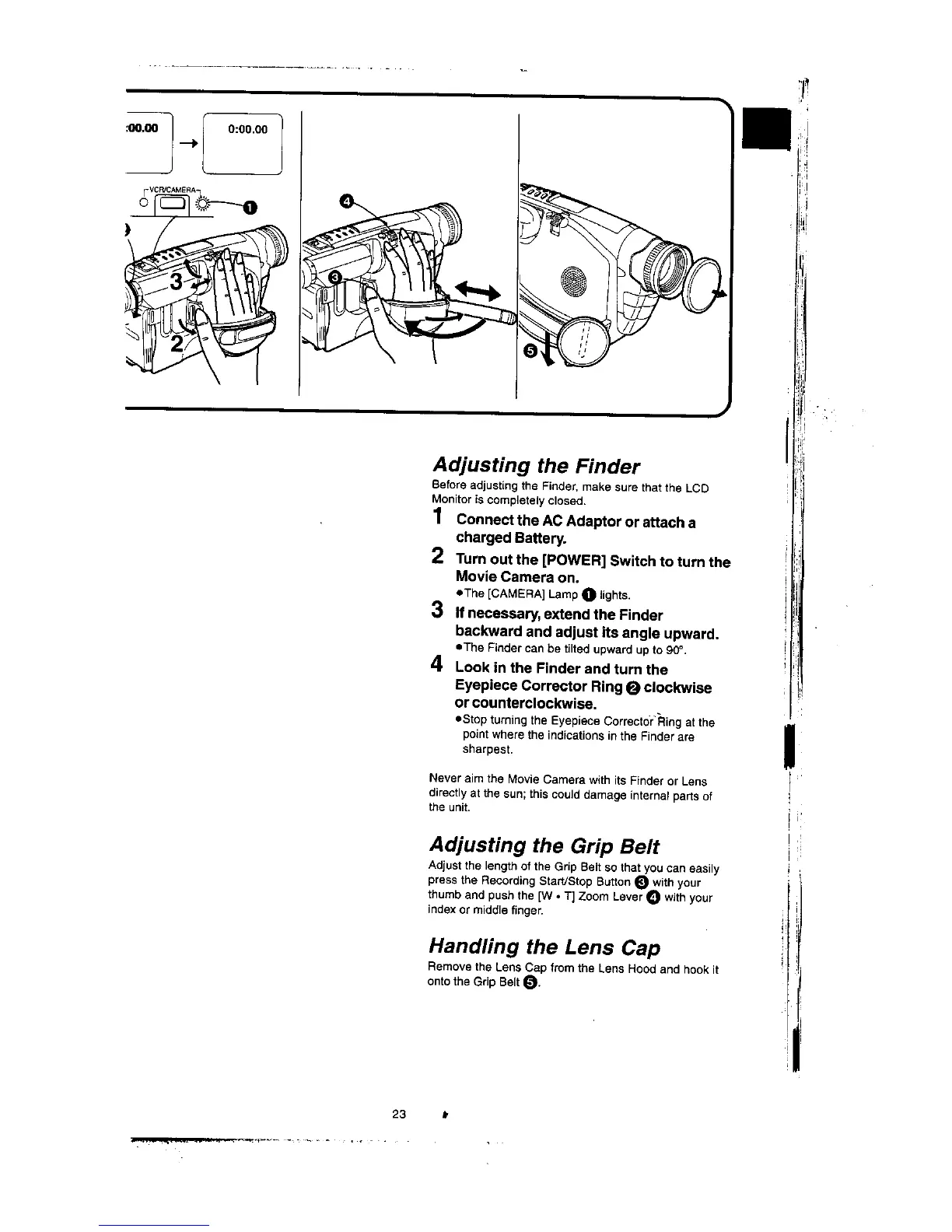 Panasonic NV-VX77A - Adjusting the Finder; Adjusting the Grip Belt; Handling the Lens Cap