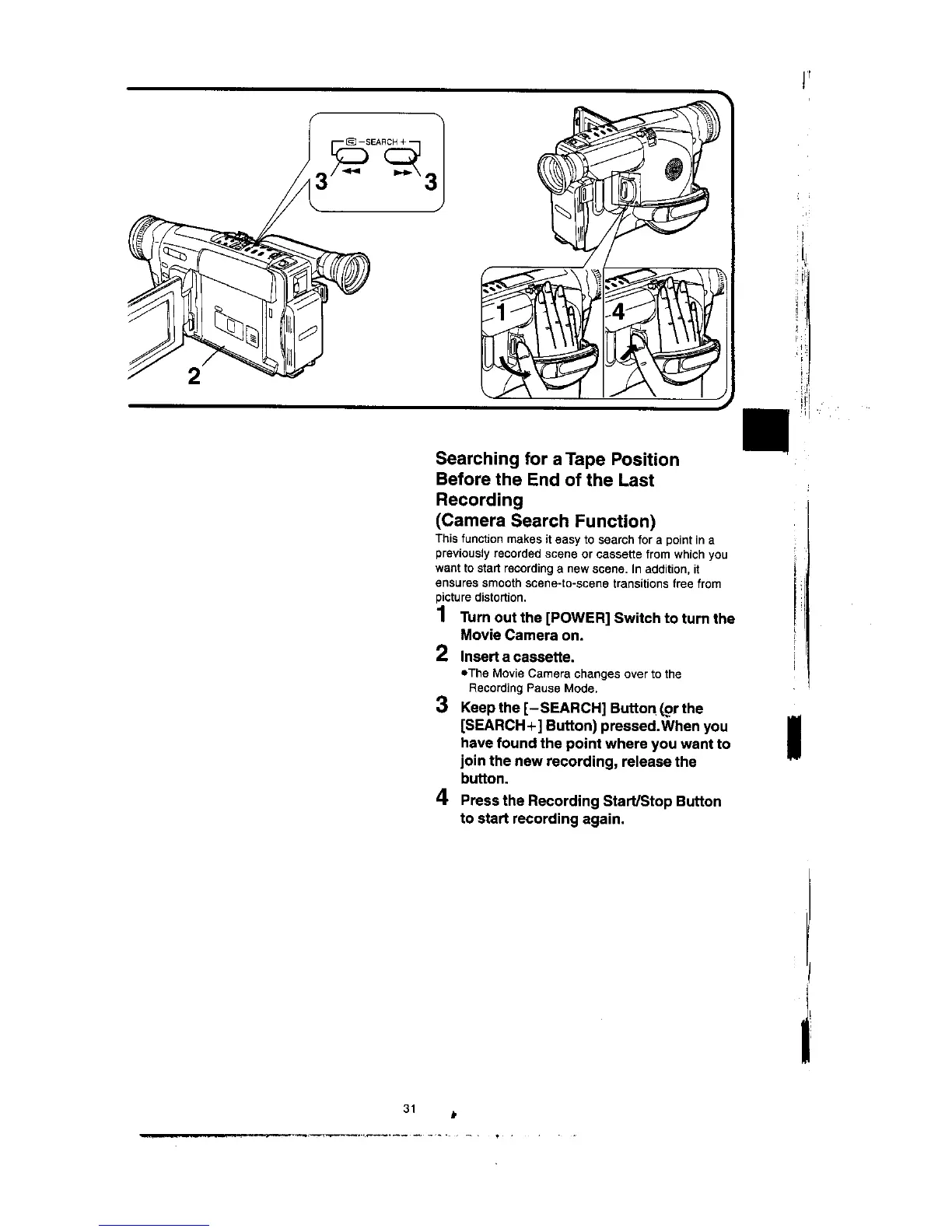 Panasonic NV-VX77A - Searching for a Tape Position before the End of the Last Recording; Camera Search Function