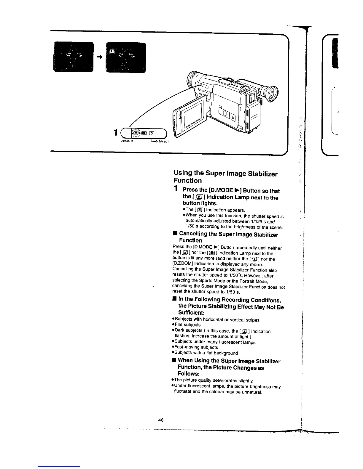 Panasonic NV-VX77A - Using the Super Image Stabilizer Function; Cancelling the Super Image Stabilizer Function