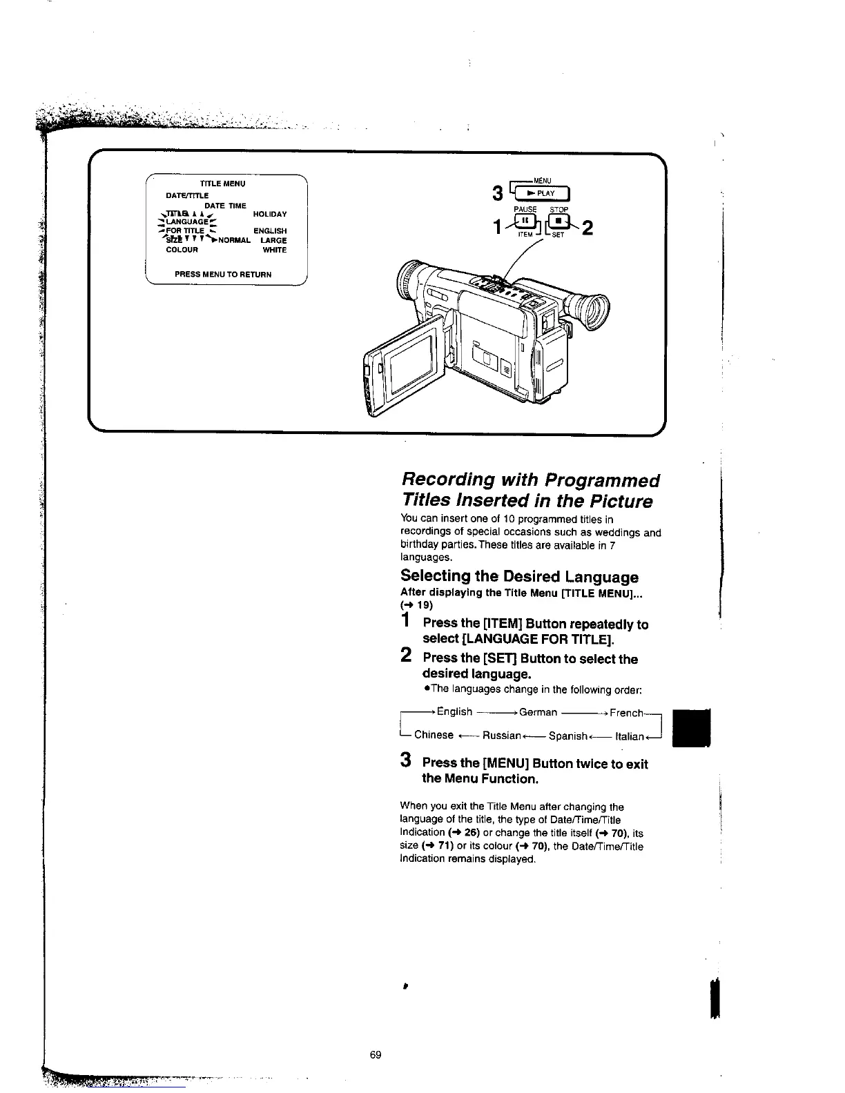 Panasonic NV-VX77A - Recording with Programmed Titles Inserted in the Picture; Selecting the Desired Language