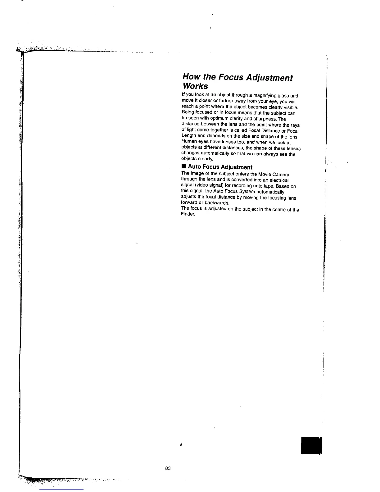 Panasonic NV-VX77A - How the Focus Adjustment Works; Auto Focus Adjustment