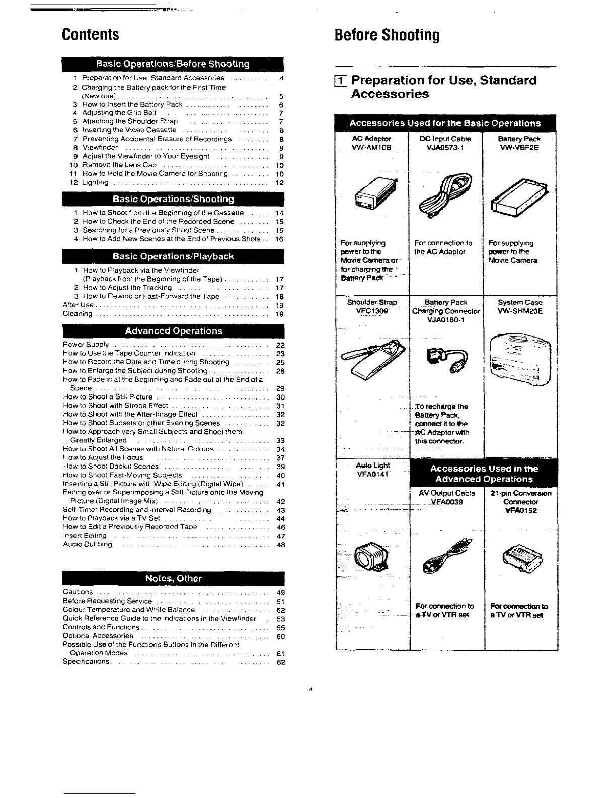 Panasonic NVM40 - Contents; Before Shooting; Accessories