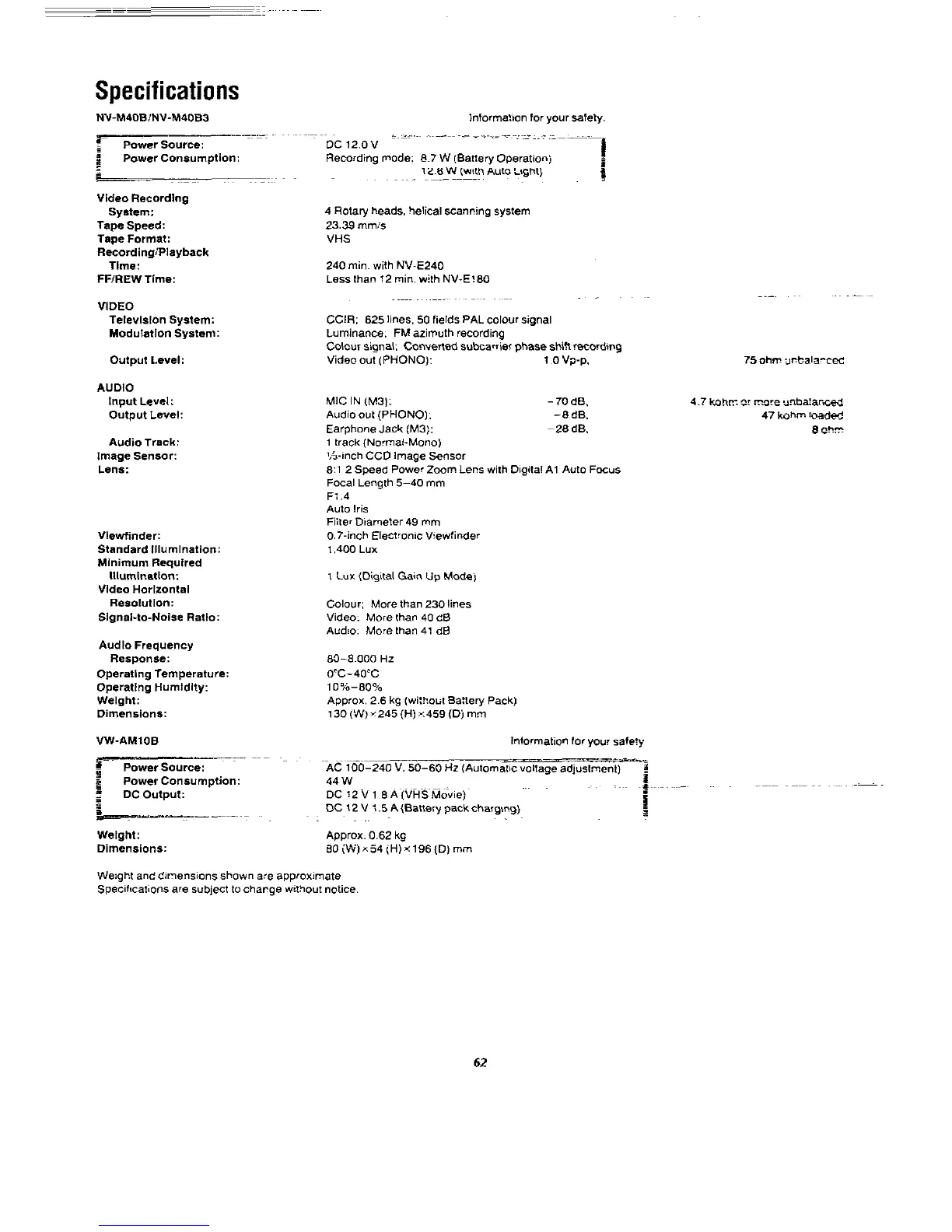 Panasonic NVM40 - Specifications