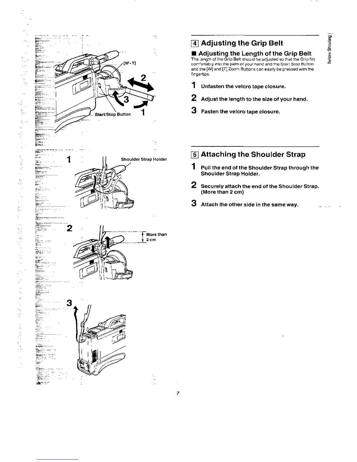 Panasonic NVM40 - Adjusting the Grip Belt; Attaching the Shoulder Strap