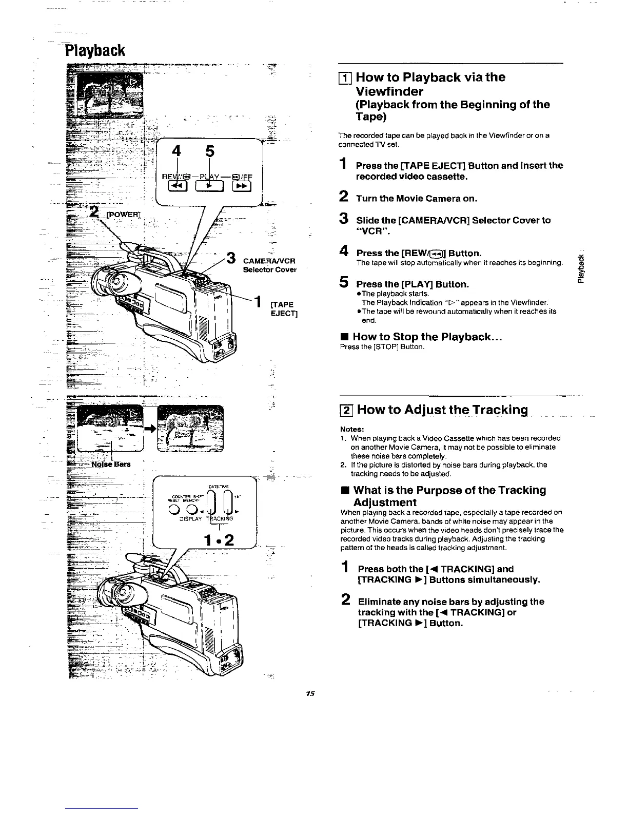 Panasonic NVM50 - Playback Operations; Playback via Viewfinder; Adjusting Tape Tracking for Picture Quality