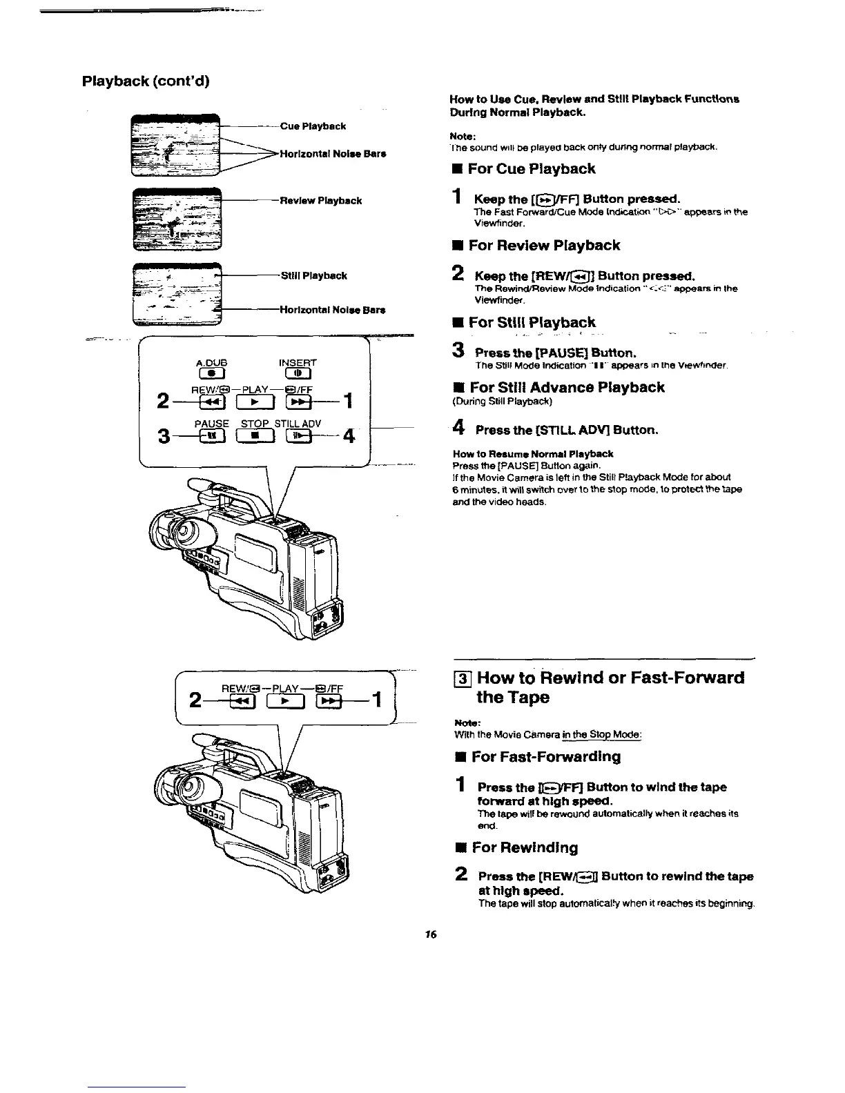 Panasonic NVM50 - How to Rewind or Fast-Forward the Tape; For Cue Playback; For Review Playback; For Still;Still Advance Playback
