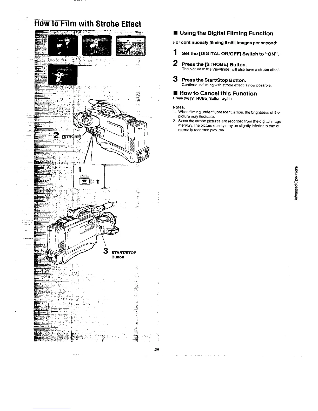 Panasonic NVM50 - How to Film with Strobe Effect; Using the Digital Filming Function
