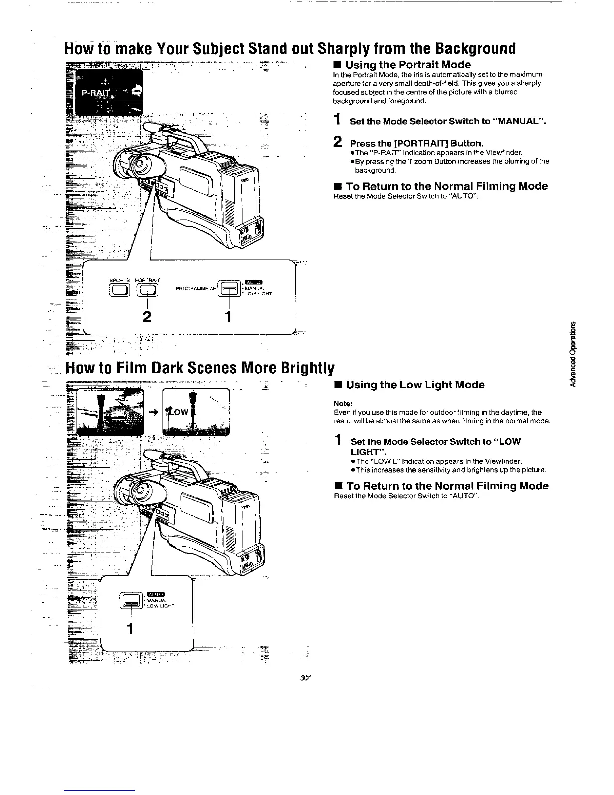 Panasonic NVM50 - To Make Your Subject Stand out Sharply from the Background; How to Film Dark Scenes more Brightly; Using the Portrait Mode; Using the Low Light Mode