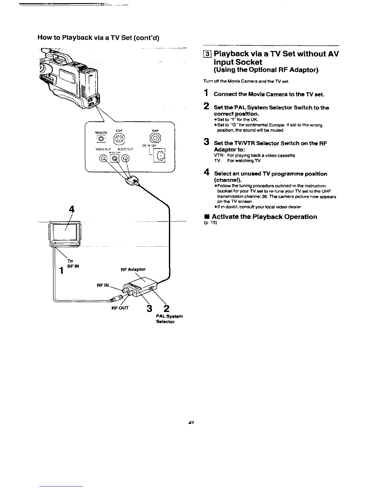 Panasonic NVM50 - Playback Via a TV Set Without AV Input Socket