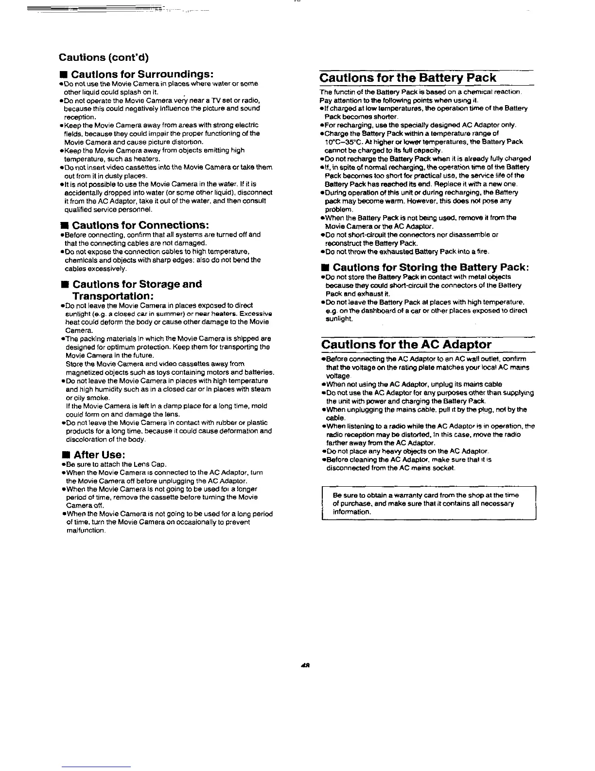 Panasonic NVM50 - General Camera, Battery, and Adaptor Cautions