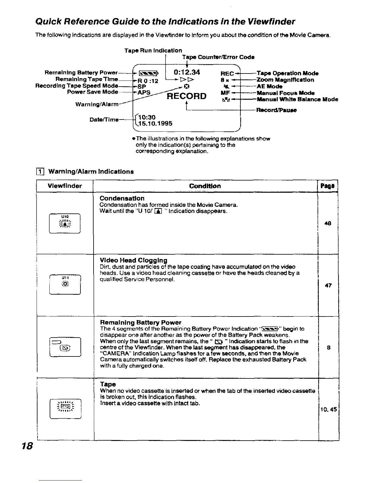 Panasonic NVR11 - Warning;Alarm Indications