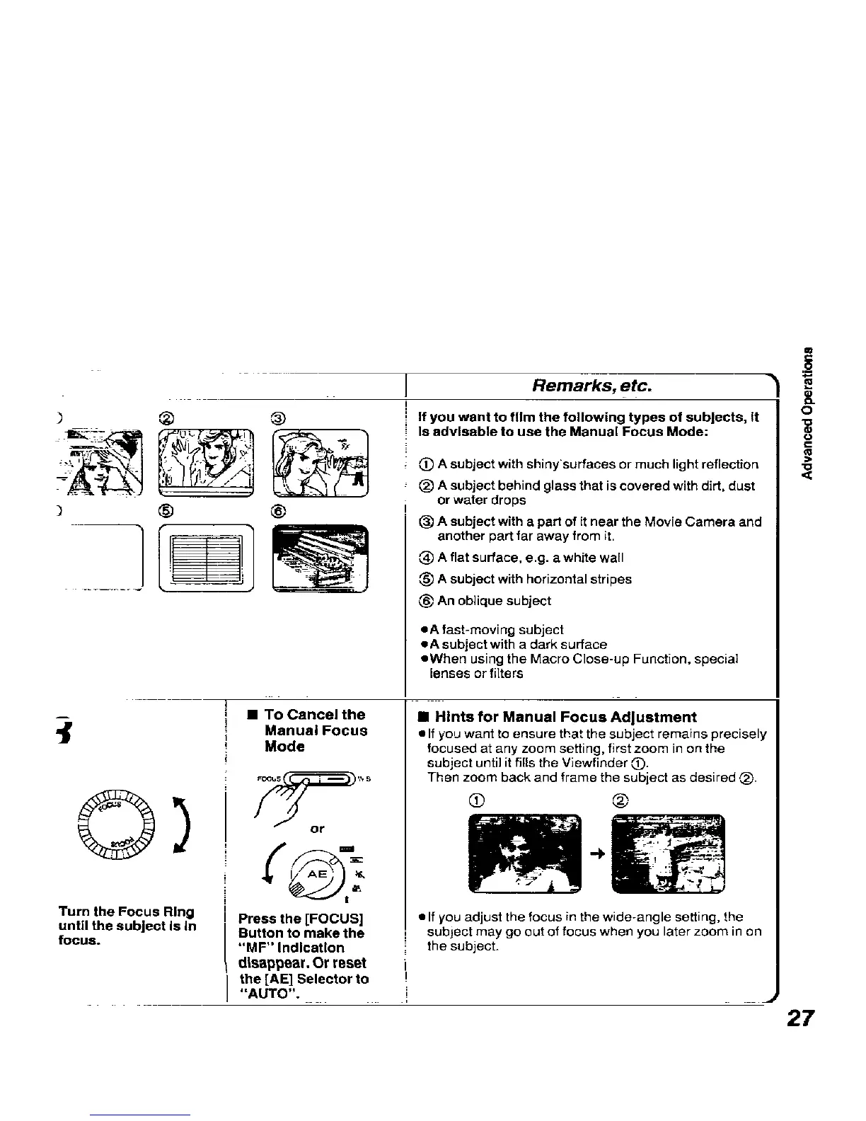 Panasonic NVR11 - Hints for Manual Focus Adjustment