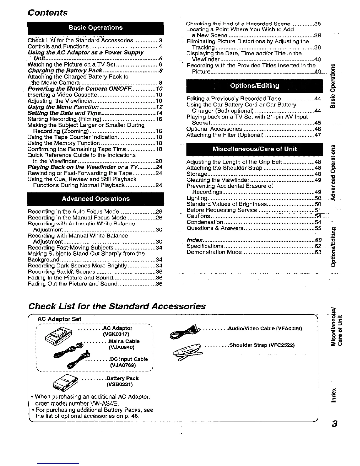 Panasonic NVRX11 - Contents; Check List for the Standard Accessories