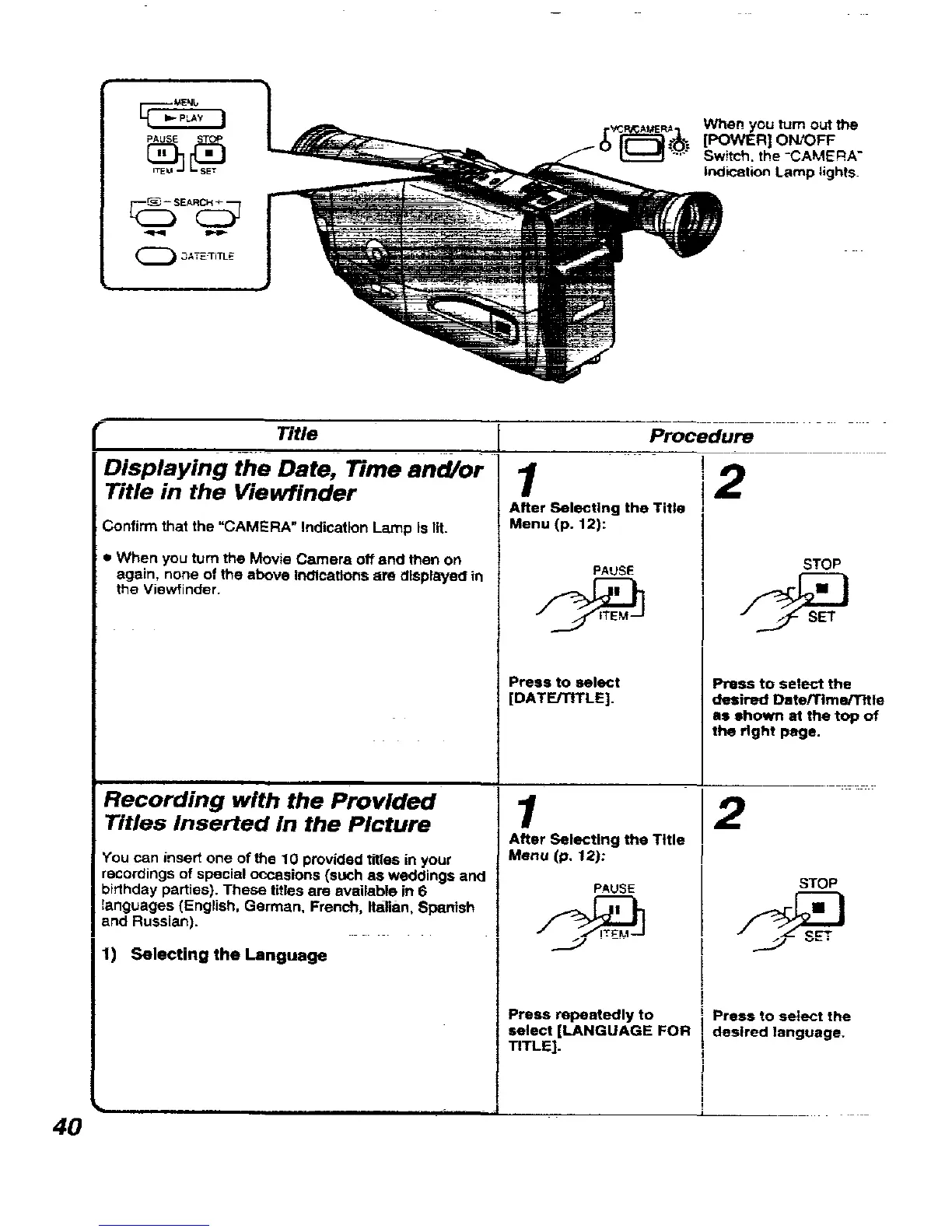 Panasonic NVRX11 - Displaying the Date, Time And;Or Title in the Viewfinder; Recording with the Provided Titles Inserted in the Picture