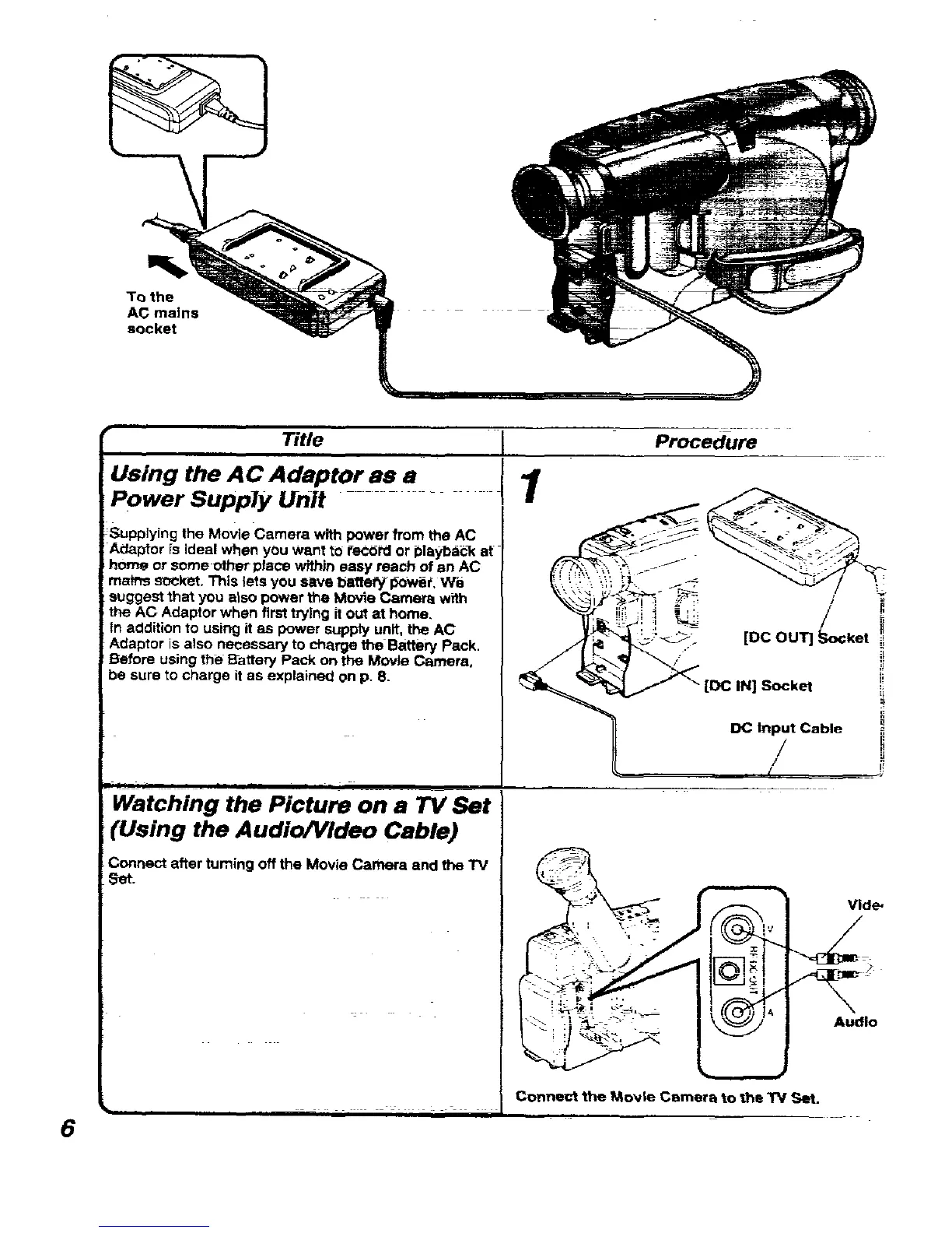 Panasonic NVRX11 - Basic Operations; Using the AC Adaptor; Watching Picture on TV