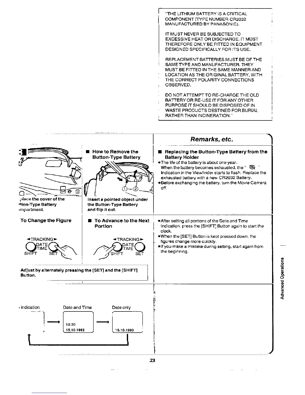 Panasonic NVRX50 - Replacing the Button-Type Battery from the Battery Holder