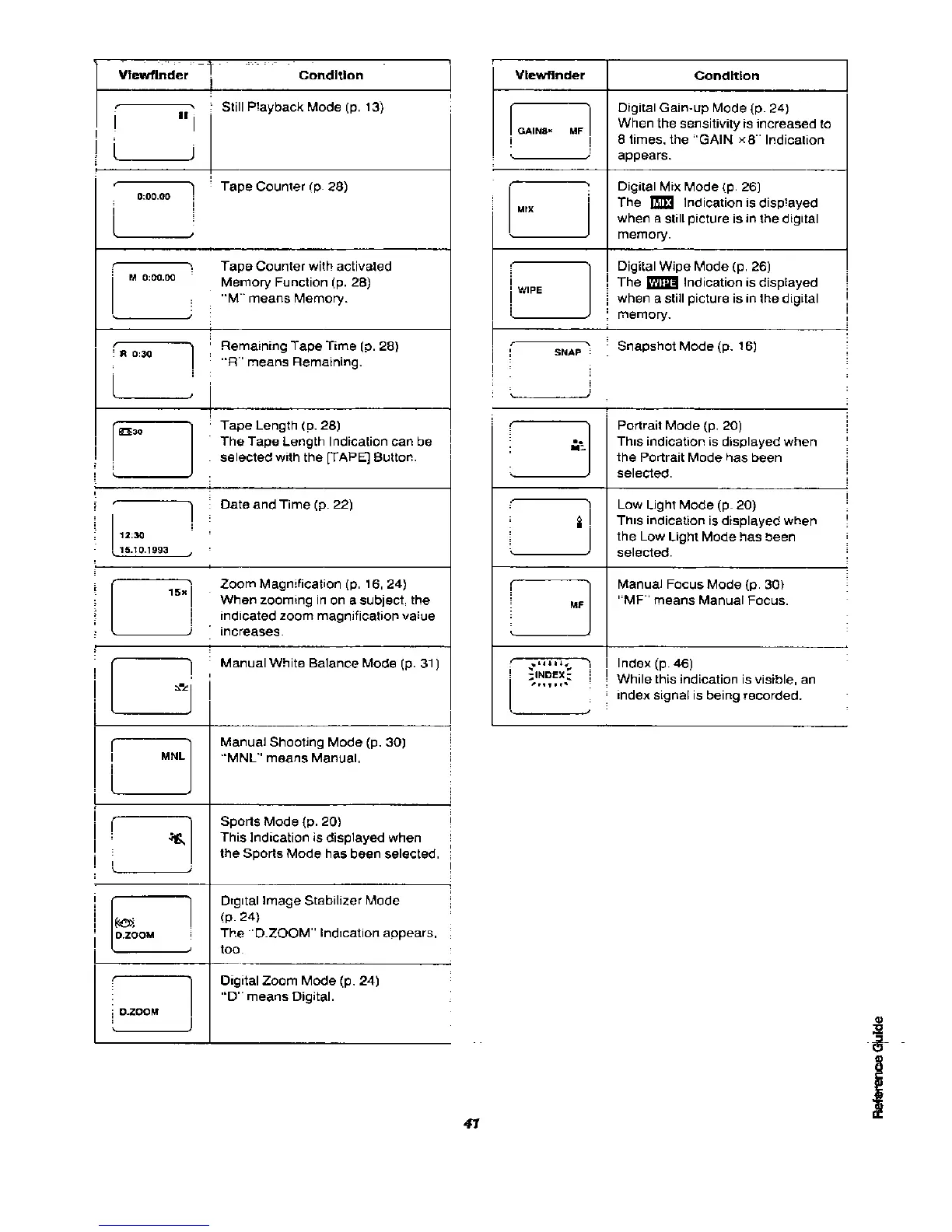 Panasonic NVRX50 - Other Viewfinder Indicators