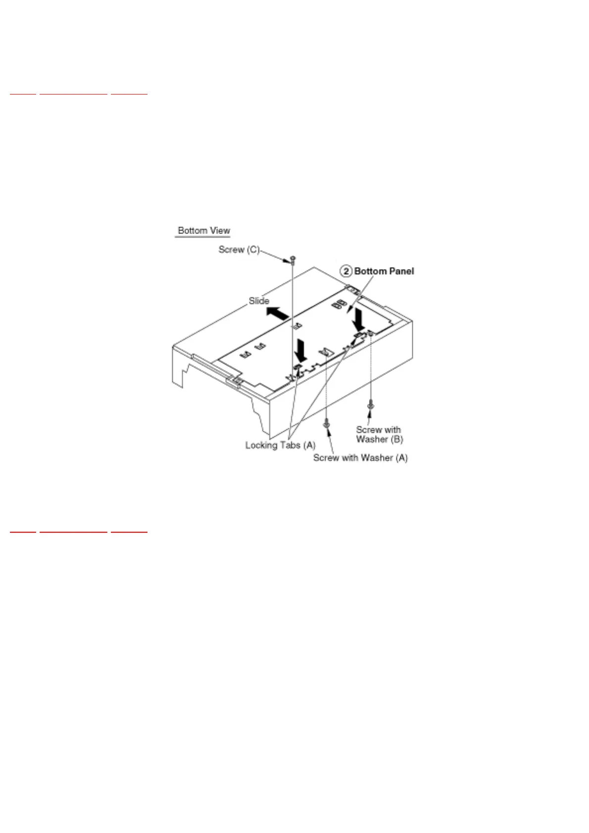 2. While pushing 2 Locking Tabs (A) to release, slide the Bottom Panel and remove.