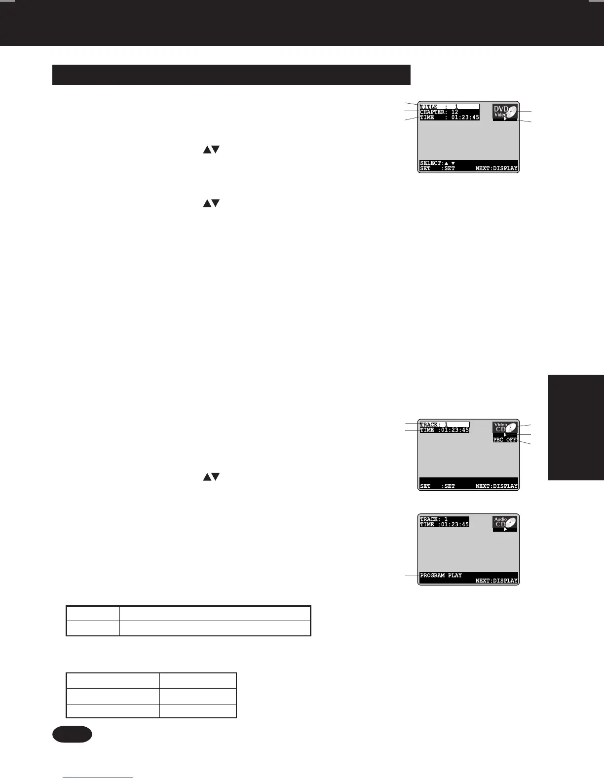 • Track No. and the elapsed playing time are not displayed during play started from